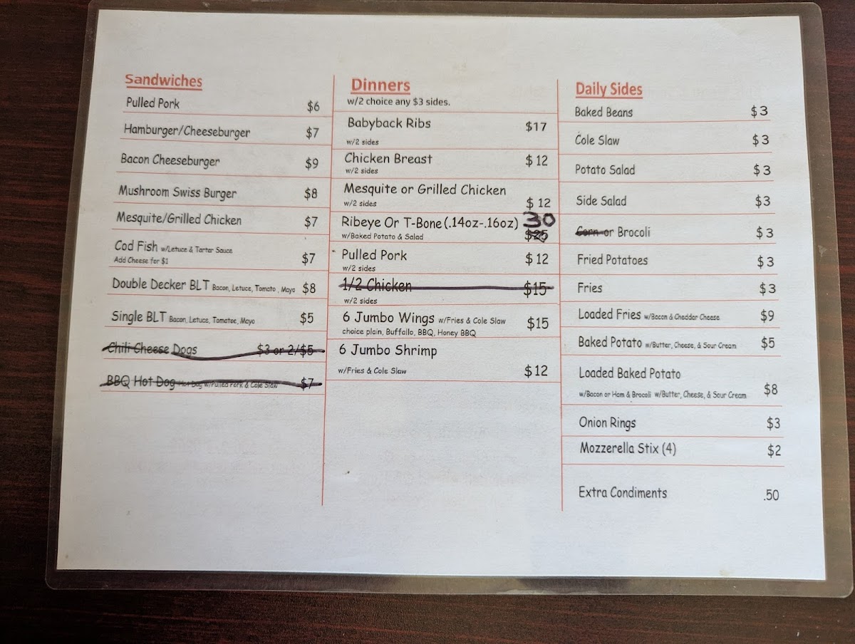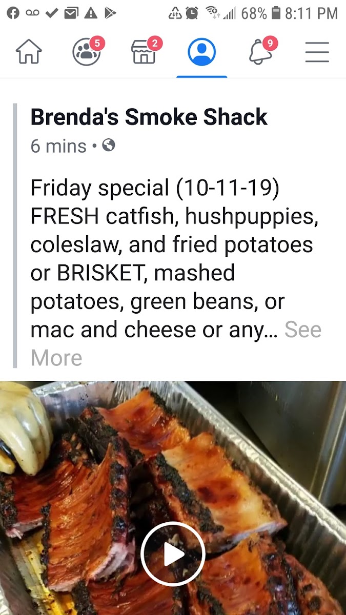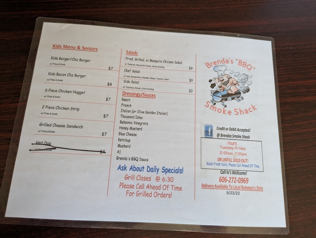 Brenda's BBQ Smoke Shack offers a varied and delicious menu, catering to all tastes with options for both kids and adults. For the younger diners, the Kids Burger/Chz Burger and Kids Bacon Chz Burger are favorites, alongside crispy 6 Piece Chicken Nuggets and Grilled Cheese Sandwich. The adult menu features a range of savory options, including the tender Pulled Pork Sandwich and hearty Bacon Cheeseburger. For a more flavorful experience, try the Mushroom Swiss Burger or the Mesquite Chicken Sandwich. The restaurant also serves a variety of satisfying dinner options like Babyback Ribs, Ribeye or T-Bone Steaks, and the juicy Grilled Chicken Breast. On the side, enjoy comforting classics such as Baked Beans, Cole Slaw, and Potato Salad. For those looking for something a little different, the Smoked Meatloaf special is a must-try. Salads like the Mesquite Chicken Salad and Chef Salad offer a lighter, yet flavorful, alternative to the heartier dishes. Daily specials keep the menu fresh, and with items like Stromboli Pizza and Cheese Sticks, there’s always something new to try. Whether you're craving something familiar or exploring new flavors, Brenda’s BBQ Smoke Shack has something to satisfy every appetite.